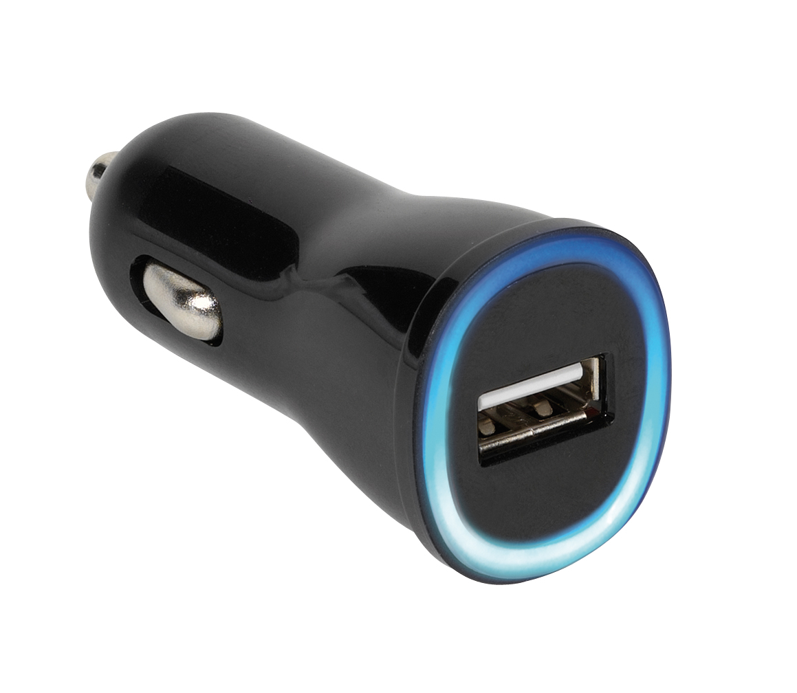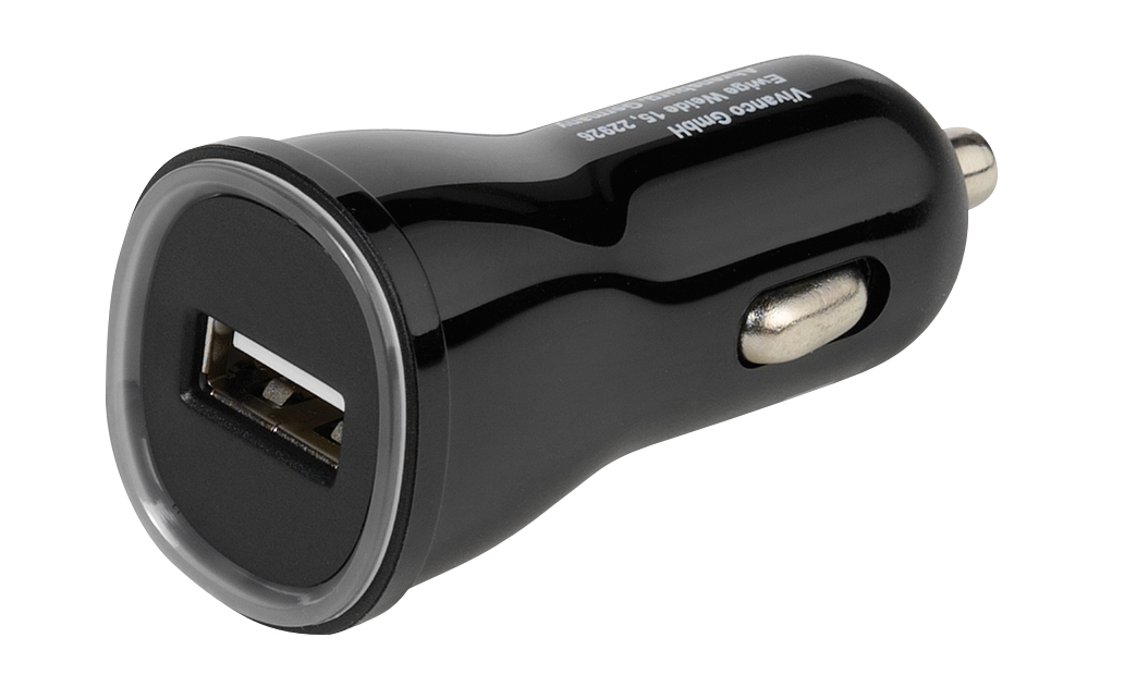 Fast charging USB-charger for 12/24V cigarette lighter socket. The universal USB car charger can be used in any 12V or 24V cigarette lighter or power socket. The charger delivers max. 2.1A for charging common tablets, smartphones, cameras, etc.