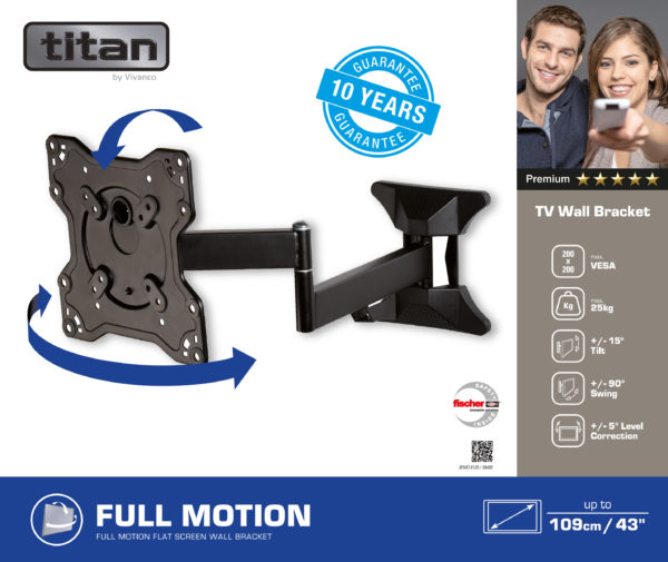 Full motion TV wall bracket for small and medium screen sizes up to 109 cm /43”