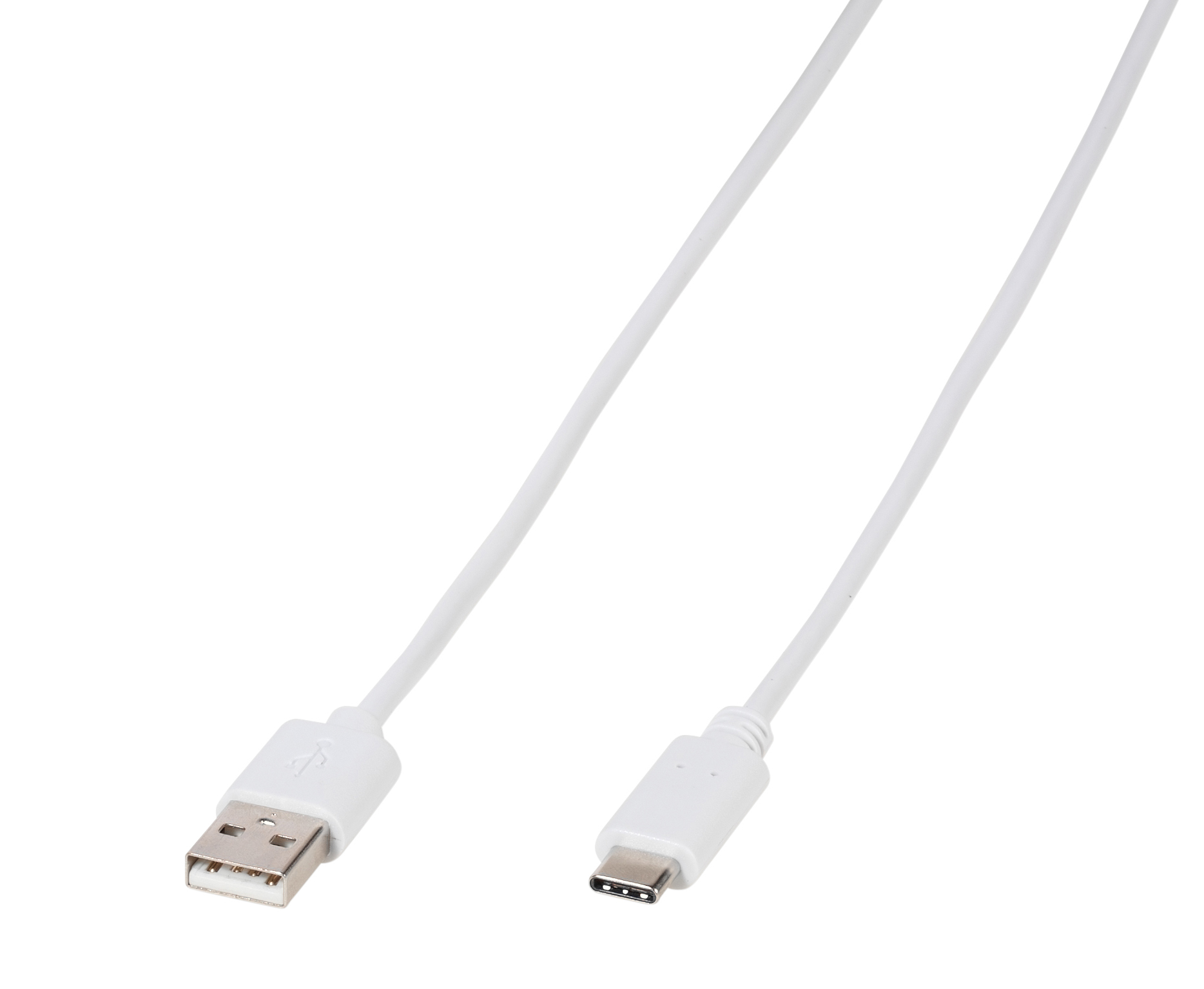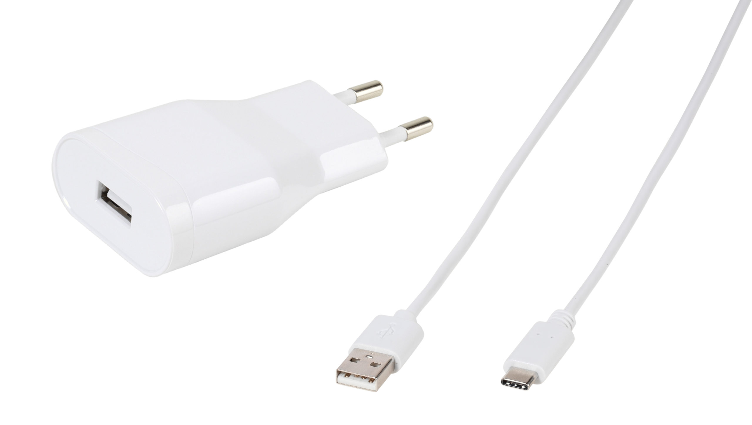 Fast Charging 2.4A USB home charger with separate 1.2m USB-C cable, white