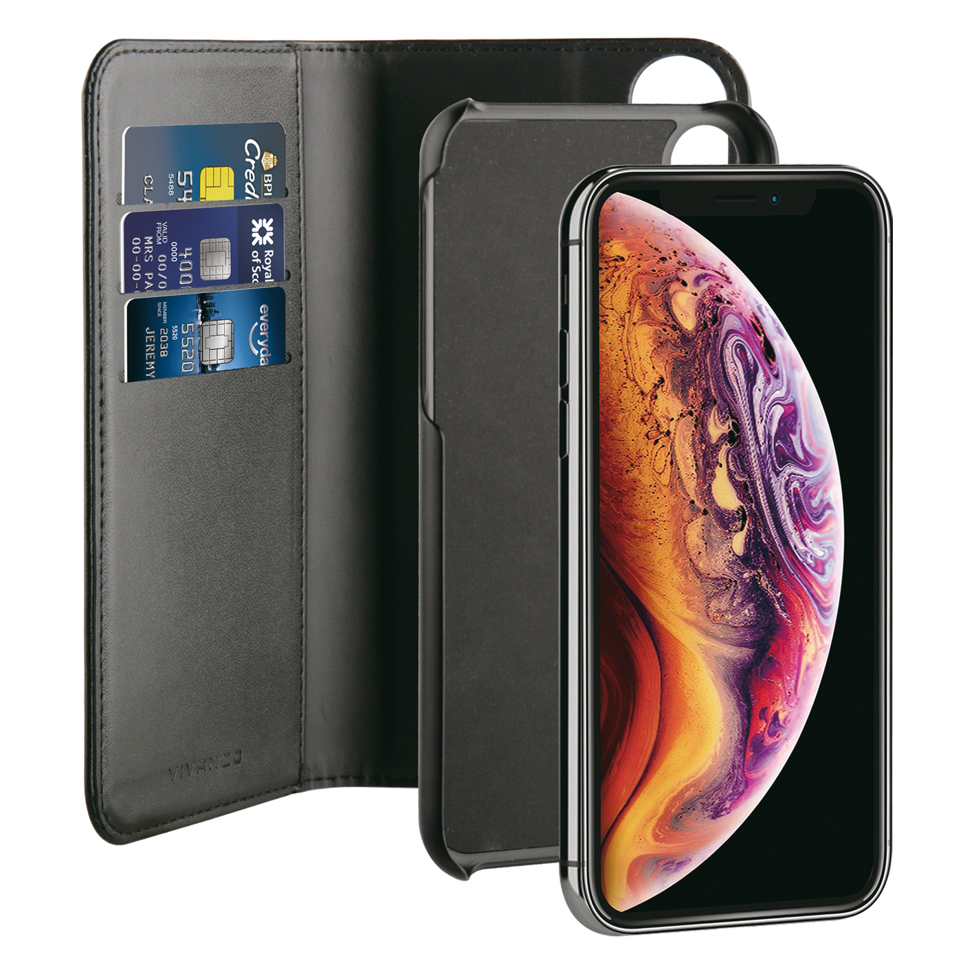 This protective 2in1 wallet case has three credit card compartments and a storage for bills etc. It is easily converted to a back case with the detachable back cover with magnet. The case is made of durable materials and protects your device against bumps and scratches in daily use. The elegant eco leather material looks and feels high quality and the perfect fit case design allows full access to all ports and device connections.