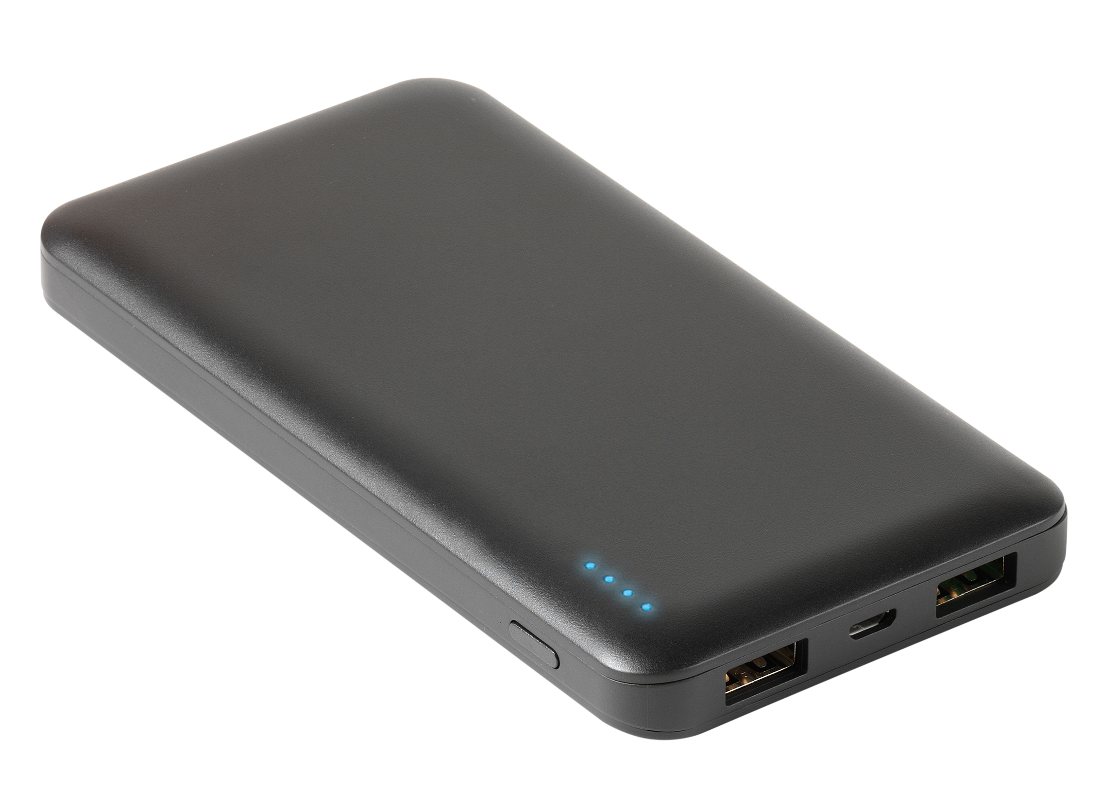 Ultra slim designed Power Bank with 2 USB-ports (2.1A/5V) and capacity LED indicator for charging of mobile devices like Smartphone, Tablet and others.