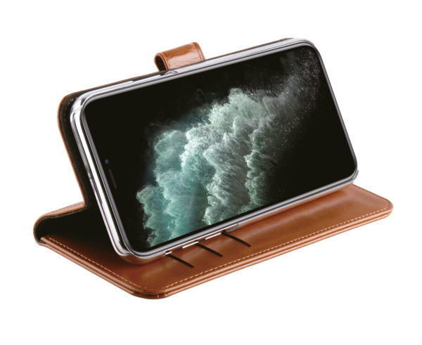 This protective wallet case has three credit card compartments and a view standing function for optimal horizontal use. The case is made of durable materials and protects your device against bumps and scratches in daily use. The elegant eco leather material looks and feels high quality and the perfect fit case design allows full access to all ports and device connections.
