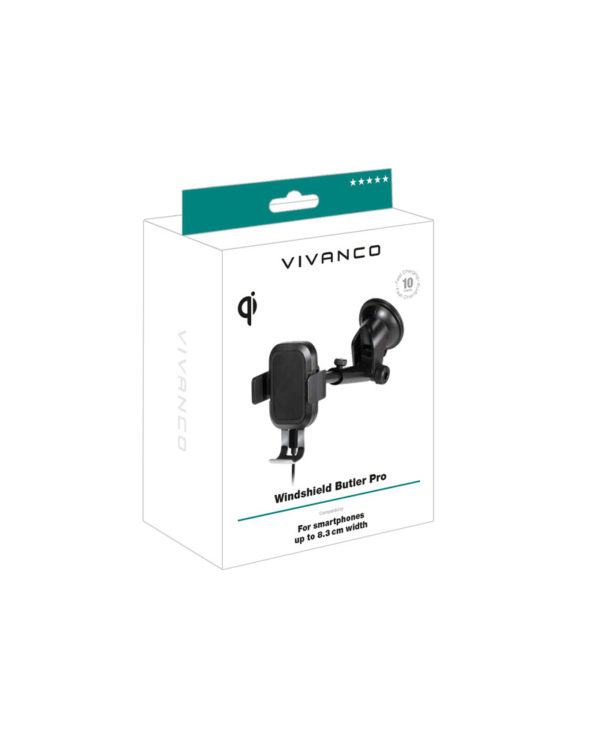 Smartphone car holder BUTLER PRO with suction cup, QI certified gravity holder, black