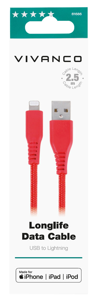 High Quality Longlife MFI Lightning USB sync.-/charging cable for connection of Apple devices with the computer or power supply for charging.
