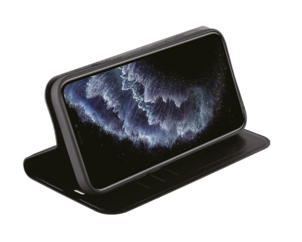 This protective wallet case of high quality material has three credit card compartments. The back cover part is made of flexible TPU material for easy on- and off device mounting offering also higher durability and better protection. The inside part of the TPU cover has a premium microfiber coating to avoid scratches on the device backside. The case is made of durable materials and protects your device against bumps and scratches in daily use but it also protects against possible wireless card thefts with built in RFID- creditcard protection. The elegant eco leather material looks and feels high quality and the perfect fit case design allows full access to all ports and device connections. The front cover has magnetic closure and the case supports wireless charging.