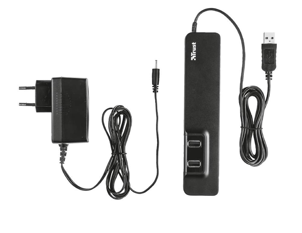 Including wall power adapter for a stable connection, even when using all ports