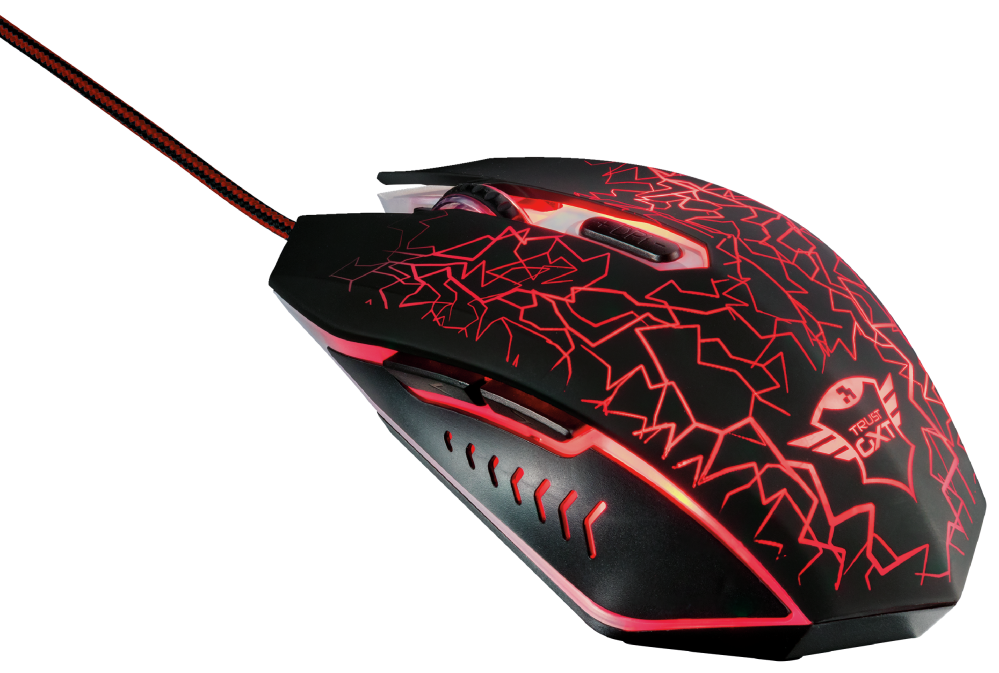 Mouse with unique LED design, 6 buttons, ambidextrous shape and 1.8m braided cable