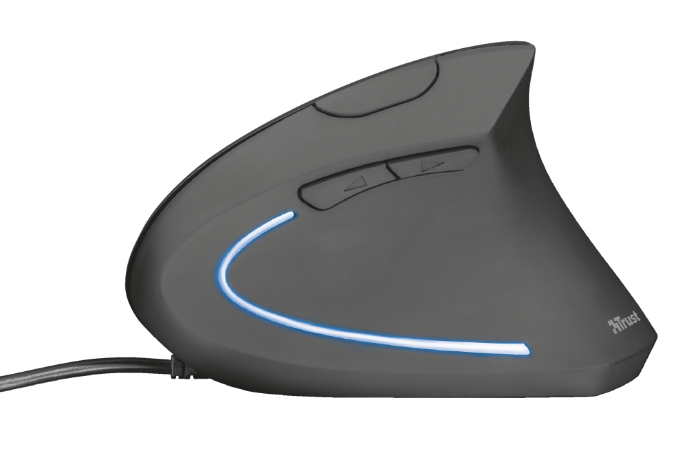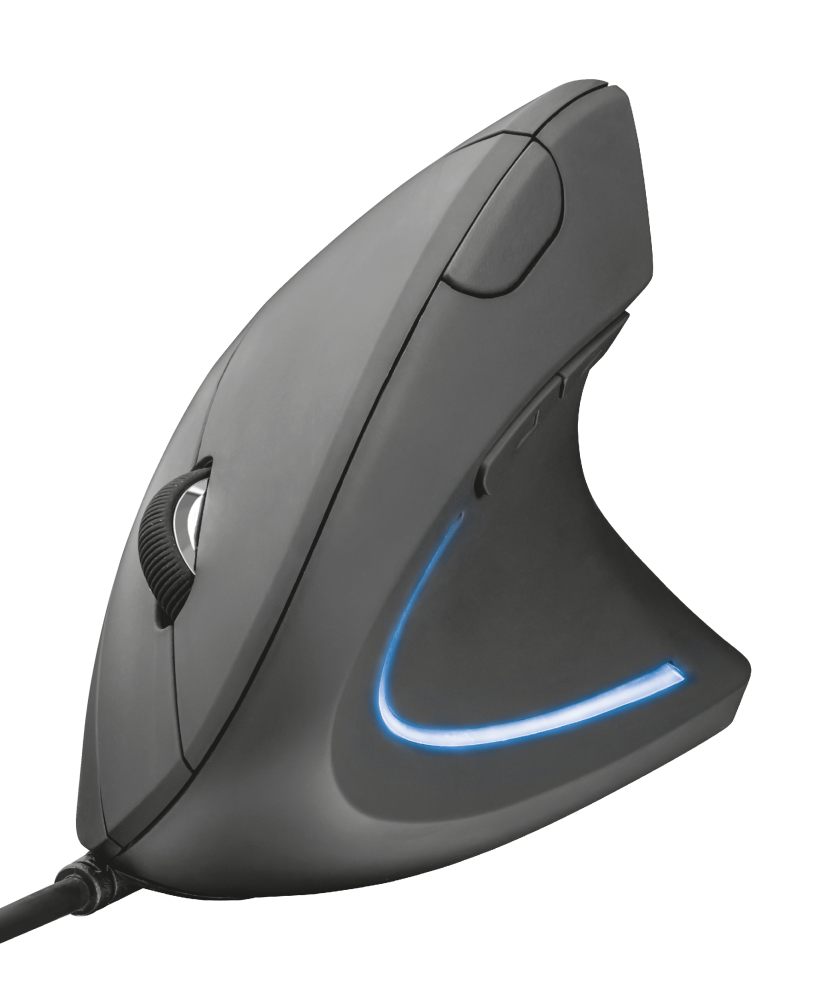 Mouse with ergonomic vertical design to reduce arm and wrist strain