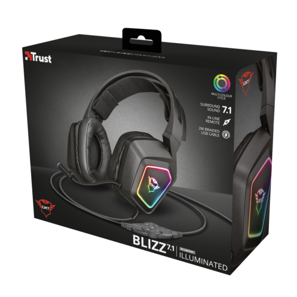 Comfortable over-ear gaming headset, with RGB illumination and 7.1 surround sound