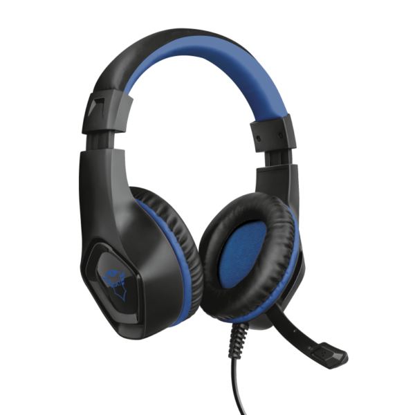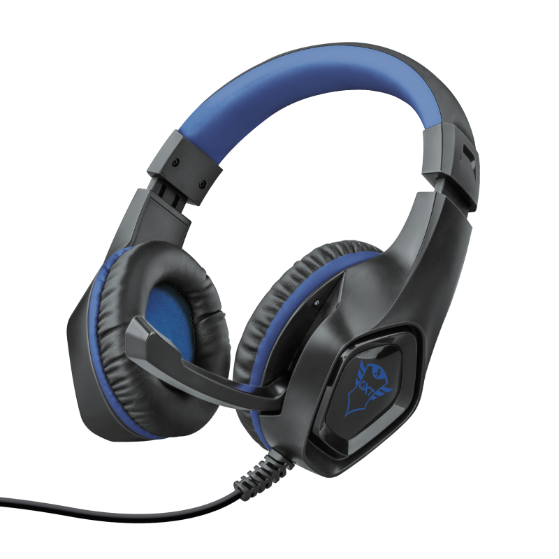 Over-ear gaming headset with fold-away microphone and adjustable headband