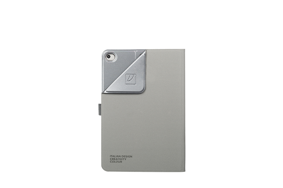 Folio case for iPad Mini 5 2019 with rigid, resistant and metallic brush finishing plus front printed fabric cover. The front cover can be flipped over to the back of the case, and has a practical folding flap allowing you to use the rear camera quickly and easily. Minerale instantly turns into a practical, adjustable stand to let you write, surf the internet, watch films and browse photos.