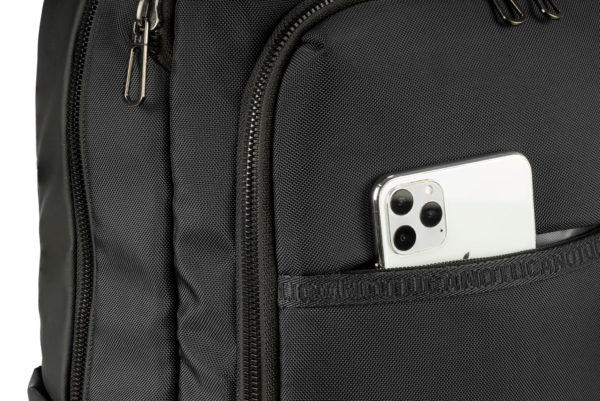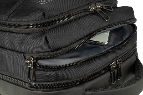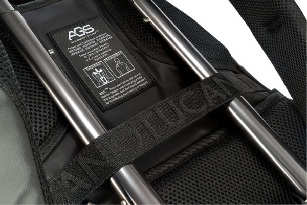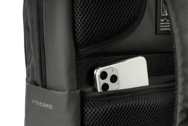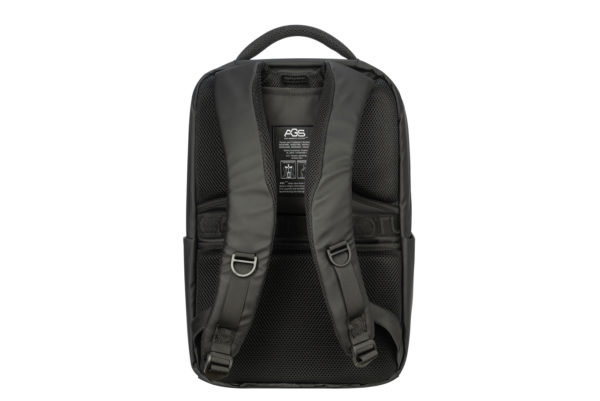 MARTE backpack with AGS System. Made with 600D nylon. Main compartment equipped with padded pockets for laptops and tablets, designed to ensure good protection. Ergonomic back enhanced with padded mesh elements, adjustable shoulder straps, a security pocket and a trolley strap. AGS System: with the elastic movement of the shoulder straps, it reduces the stiffness of the back and neck muscles, buffering the pressure of the backpack’s load through an even distribution of the weight between your hips and shoulders.