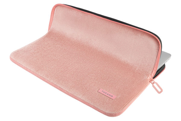 Second skin sleeve, neoprene and corduroy computer cover, Anti-Slip System to secure your laptop, Flat-Lock stitching for a perfect fit, Convenient double-pull zip closure, Soft, scratch-resistant interior