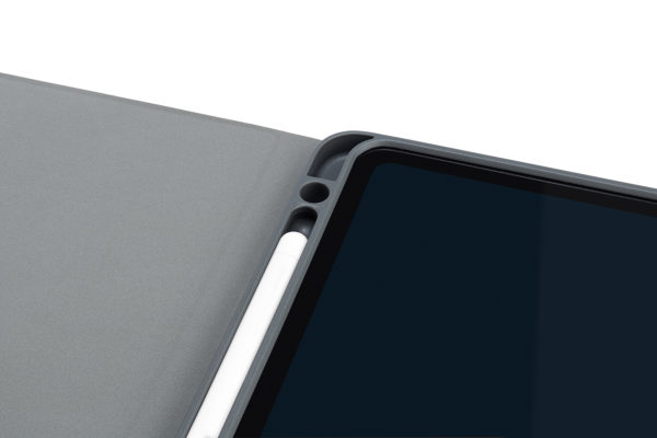 Folio case for iPad Air 10,9″ with rigid back shell, resistant and with satin finishing, color matching with the device. The front cover with the folding flap allows you to use the camera very easily. Apple Pencil’s internal support