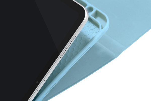 Folio case for iPad Air 10,9″ with rigid back shell, resistant and with satin finishing, color matching with the device. The front cover with the folding flap allows you to use the camera very easily. Apple Pencil’s internal support
