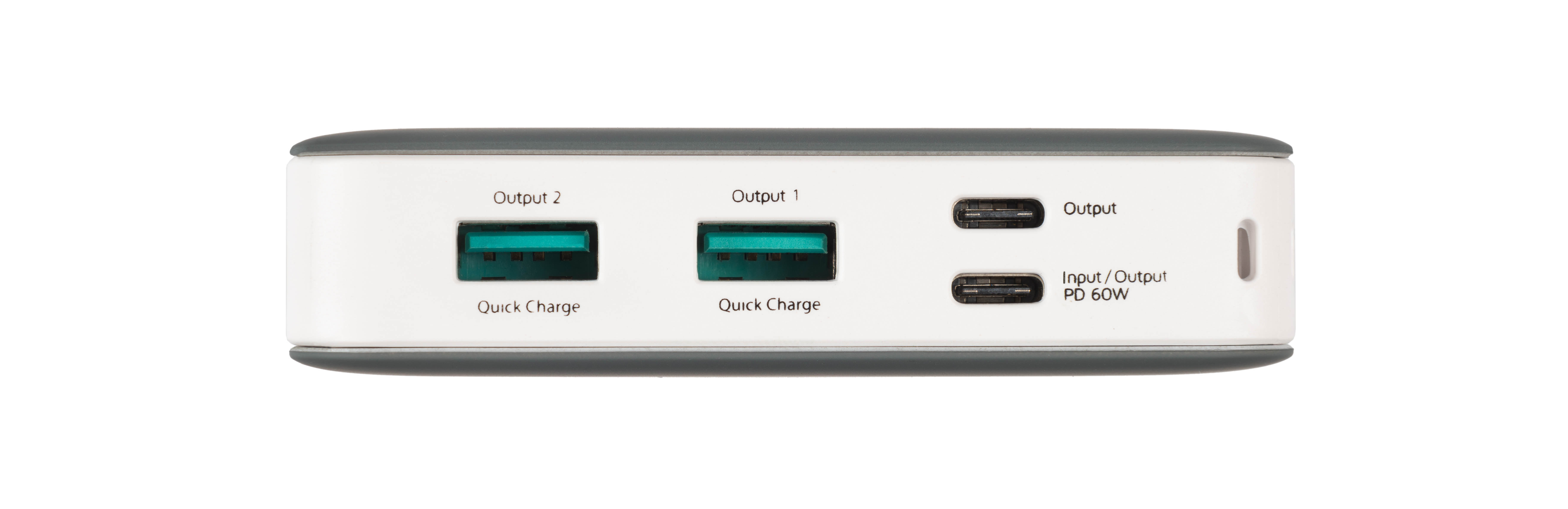Output: 1x USB-C PD 60W, 1x USB-C 15W (5V/3A), 2x USB Quick Charge 3.0 18W