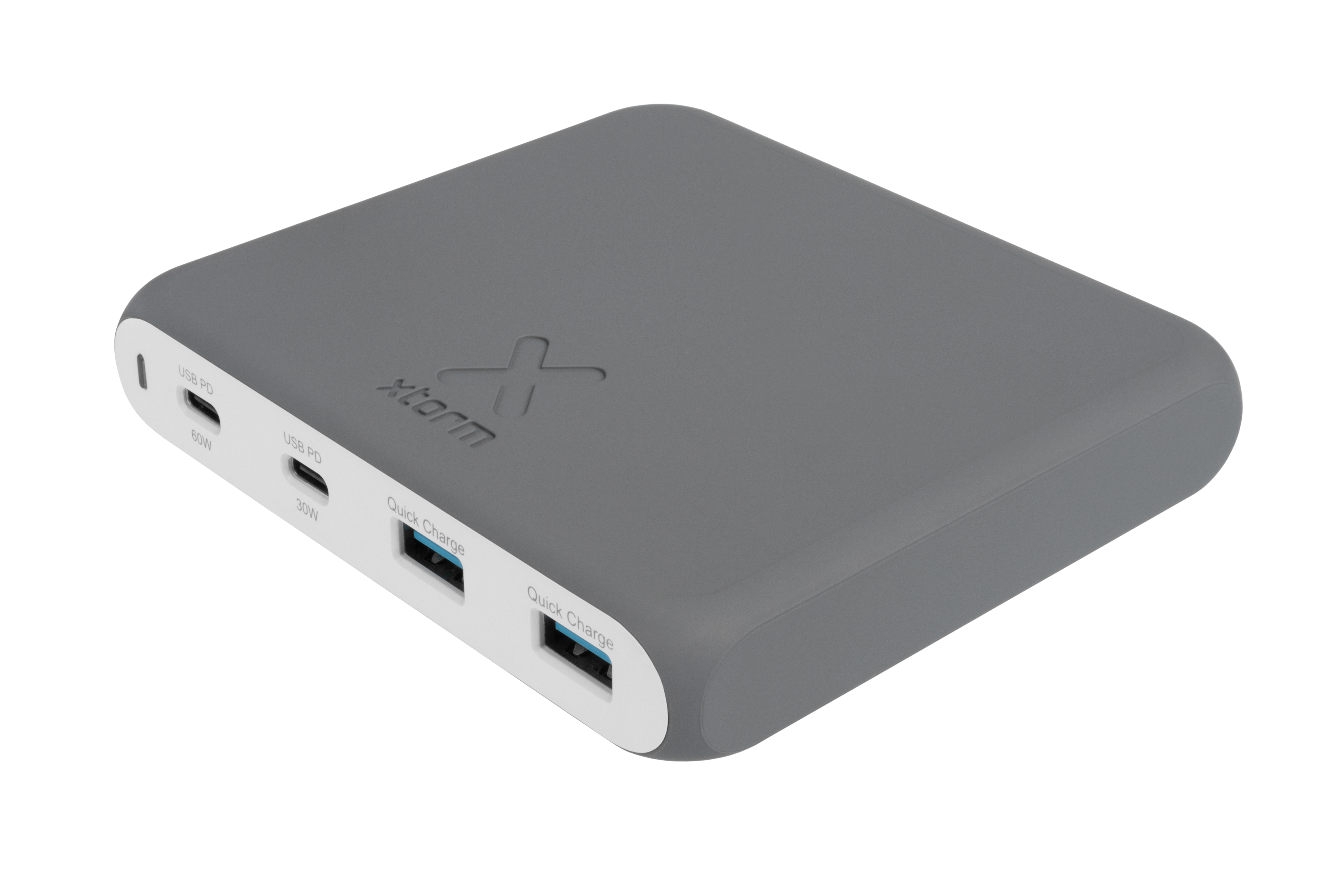 The Xtorm USB Power Hub Edge is an AC-powered charging station with 4 outputs. It features two USB-C PD (Power Delivery) ports capable of charging USB-C laptops, as well as two Quick Charge 3.0 USB ports. This means that you can fast charge almost any device!