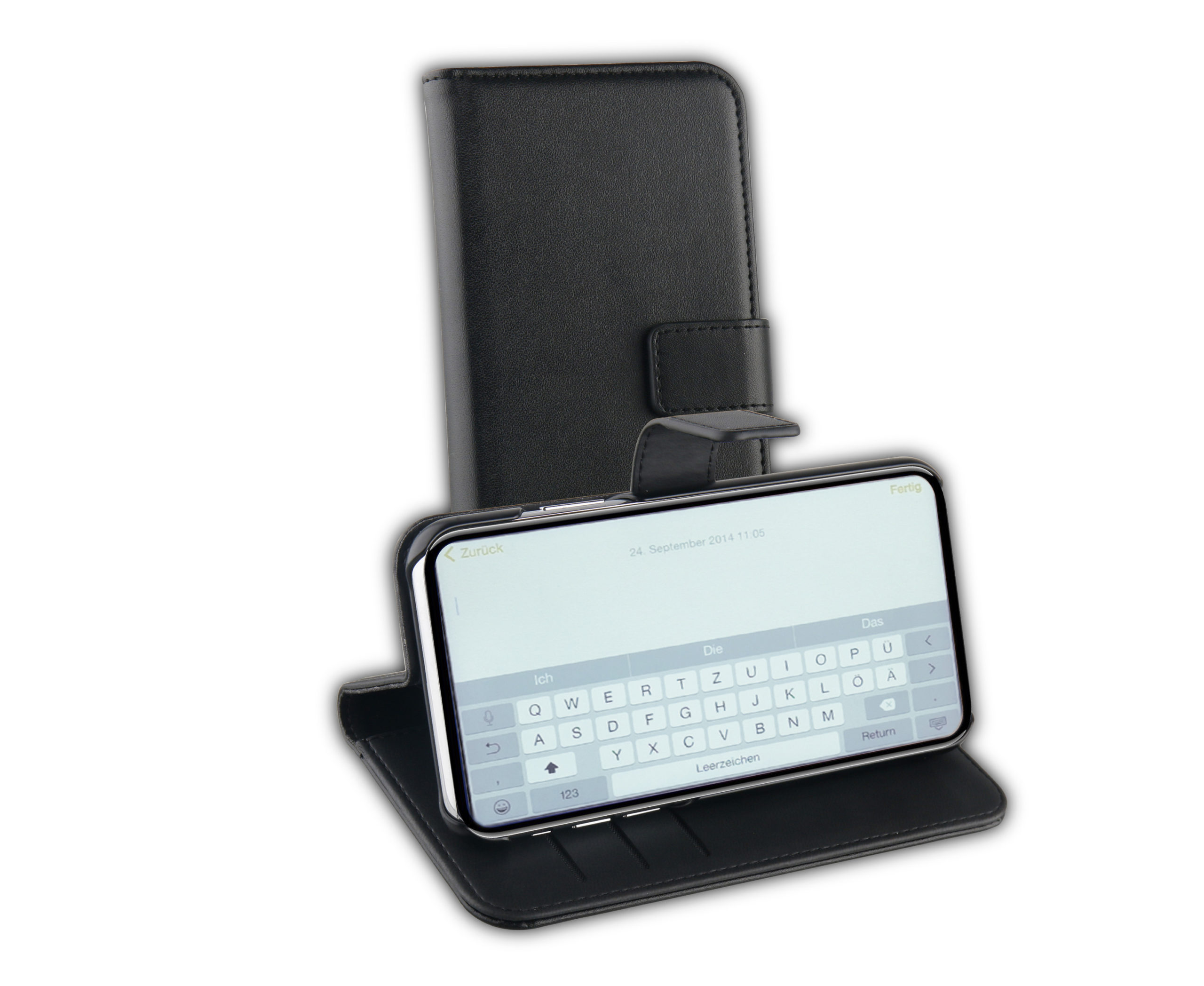 Detta skyddande plånboksfodral har tre kreditkortsfack och stativfunktion för optimalt horisontellt läge. Fodralet är gjort av hållbara material och skyddar din enhet mot stötar och repor i dagligt bruk. Det eleganta materialet i konstläder är av hög kvalitet och har perfekt passform för obehindrad åtkomst till alla portar och anslutningar.