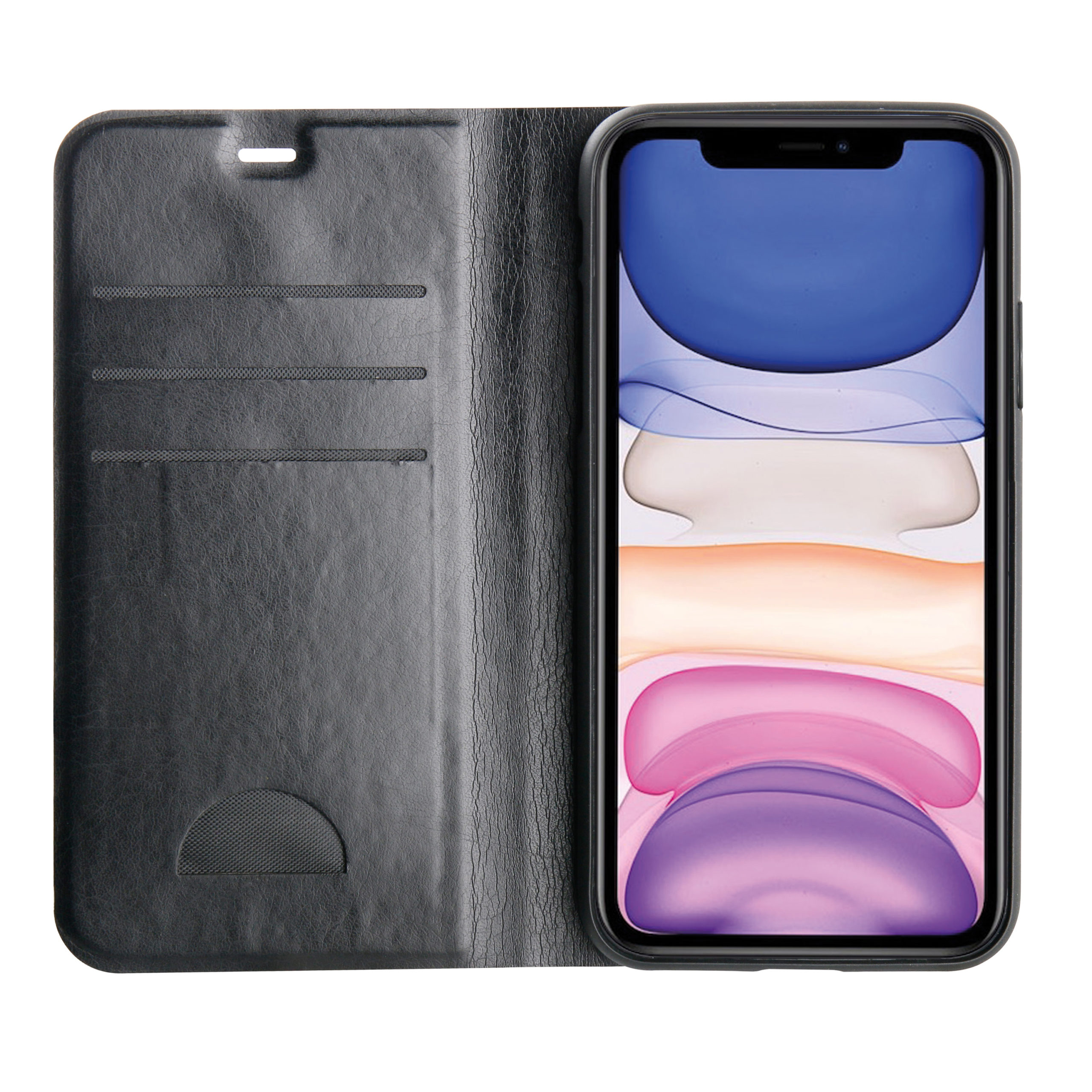 Detta skyddande plånboksfodral av högkvalitativt material har tre kreditkortsfack. Bakstyckets del är tillverkad av flexibelt TPU-material för enkel montering på och av enhet, vilket också ger högre hållbarhet och bättre skydd. Den inre delen av bakstycket har en premium mikrofiberbeläggning för att undvika repor på enhetens baksida. Väskan är tillverkad av slitstarka material och skyddar din enhet mot stötar och repor vid daglig användning, men skyddar också mot eventuella trådlösa kortstölder med inbyggt RFID-kreditkortsskydd. Det eleganta materialet i konstläder ser ut och känns av hög kvalitet och den perfekta passformen ger full åtkomst till alla portar och anslutningar. Fodralet har magnetisk stängning och stöder trådlös laddning.