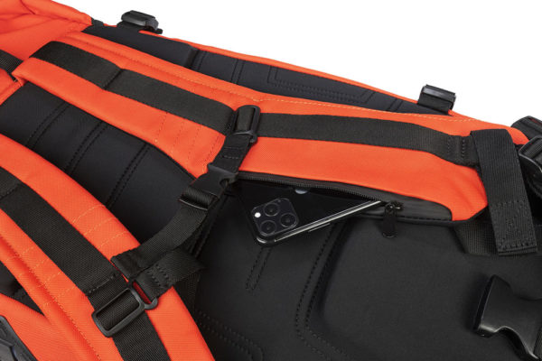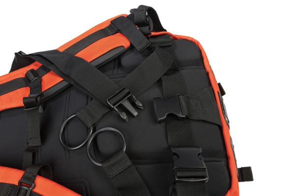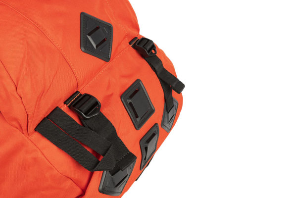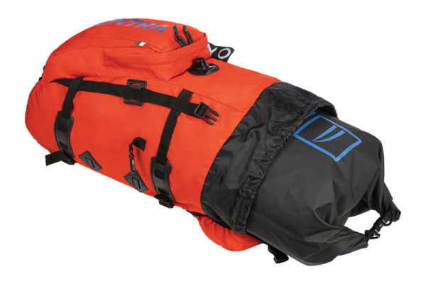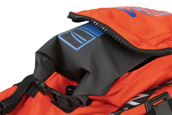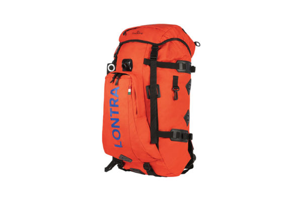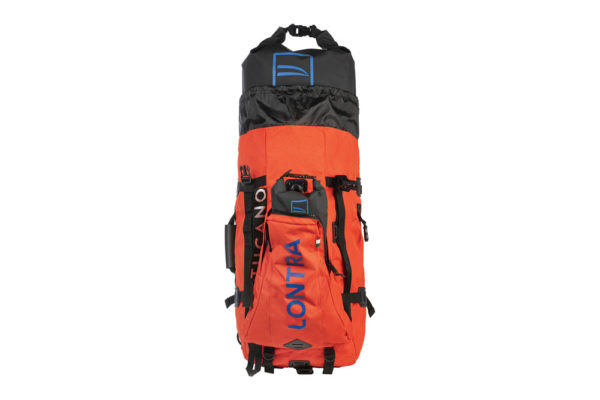 Miljövänlig flytande ryggsäck. Lontra är en miljövänlig, flytande ryggsäck, designad för marina miljöer. Den består av ett yttre skal, tillverkat av ett högteknologiskt tyg tillverkat av återvunna plastflaskor och två inre vattentäta torrpåsar. Dubbelhöljet gör det unikt och säkerställer ett bättre skydd mot stötar eller tårar. Det yttre skalet, som stängs med dragsko och en klaff, har öppningar för vattendränering, en rymlig framficka samt justerbara bröstben och sidoremmar. Lontra, tillverkad i säkerhetsorange, kan flyta, signalera och navigera bredvid dig; den har också två vattentäta fack. Det yttre skalets kapacitet är 70L, och de två inre torrpåsarna är 40L respektive 2L. Produktens originalitet gör den till ett mycket mångsidigt tillbehör, perfekt för alla typer av vattensporter och vattenturer. Den är utrustad med en signalflagga och ett band med band för en sele som kan anslutas till två fasta ringar.